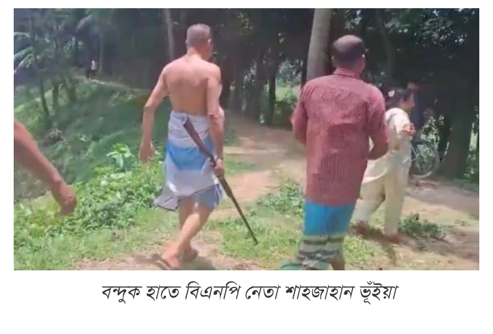 ওয়ার্ড বিএনপির সভাপতি শাহজাহান ভূঁইয়া বলেন, পুকুর সংস্কারের নামে আমার গাছপালা কেটে ফেলছিল। বাধা দিতে গিয়ে আমি মারধরের শিকার হয়েছি। আমার বৈধ বন্দুক পরিষ্কার করার সময় কেড়ে নেয়। সেটা ফিরিয়ে আনার সময় ছবি তুলে অপপ্রচার করছে।