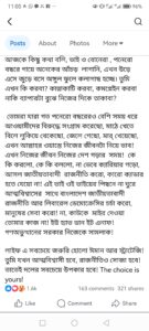 তুমি এখন কি করবা? কান্নাকাটি করবা, কমপ্লেইন করবা নাকি ব্যাপারটা বুঝে নিজের দিকে তাকাবা? পোস্টে তিনি লিখেন, আজকে কিছু কথা বলি, ভাই ও বোনেরা, তোমরা যারা গত পনেরো বছরেরও বেশি সময় ধরে আওয়ামীদের বিরুদ্ধে সংগ্রাম করেছো, মাঠে খেতে বিলে লুকিয়ে থেকেছো, জেলে গেছো, মার খেয়েছো, এখন আল্লাহর ওয়াস্তে নিজের জীবনটা নিয়ে ভাবো! এখন নিজের জীবন নিজের দেশ গড়ার সময়! কে কি করল, কে কি বললো, না ভেবে ক্যারিয়ার গড়ো, আসল জাতীয়তাবাদী রাজনীতি করো, কারও ক্যাডার হতে যেও না!