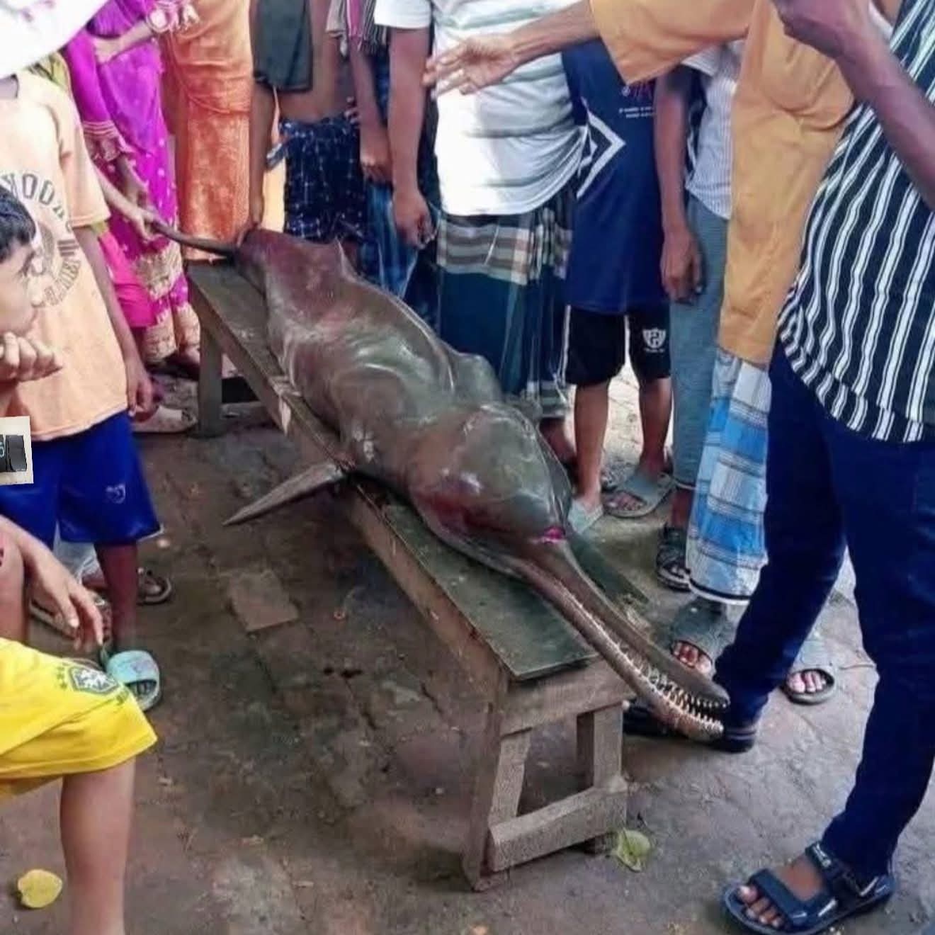 আশপাশের লোকজন সেই শুশুকটিকে মেরে ফেলেছে। আনন্দে ভাসছে লোকজন!!