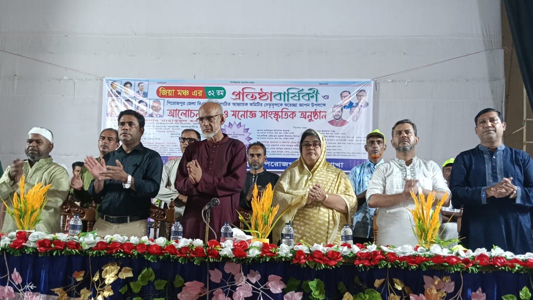 জিয়া মঞ্চের ৩২ তম প্রতিষ্ঠা বার্ষিকী ও পিরোজপুর জেলা বিএনপির নবগঠিত কমিটির নেতৃবৃন্দকে শুভেচ্ছা জ্ঞাপন উপলক্ষে আলোচনা সভা ও মনোজ্ঞ সাংস্কৃতিক অনুষ্ঠান অনুষ্ঠিত হয়েছে।