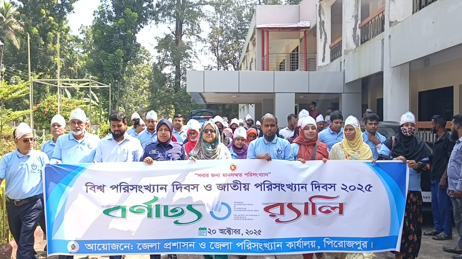 “সবার জন্য মানসম্মত পরিসংখ্যান” এই প্রতিপাদ্যকে সামনে রেখে পিরোজপুরে বর্ণাঢ্য আয়োজনের মধ্য দিয়ে উদযাপিত হয়েছে বিশ্ব ও জাতীয় পরিসংখ্যান দিবস। এ উপলক্ষে জেলা প্রশাসন ও জেলা পরিসংখ্যান অফিসের উদ্যোগে সোমবার (২০ অক্টোবর) সকাল ১০ টায় একটি বর্ণাঢ্য র্যালি বের করা হয়।