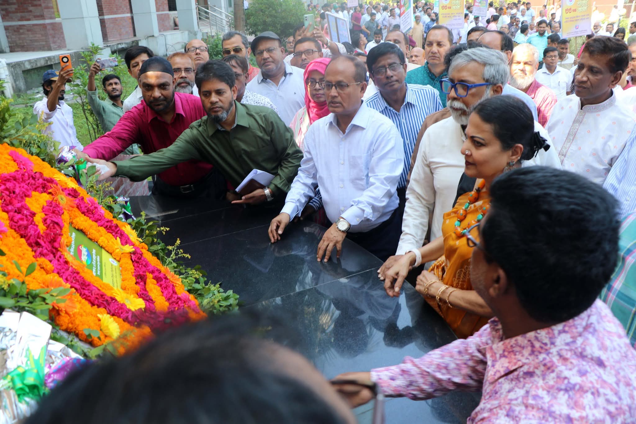 পতাকা উত্তোলন শেষে উপাচার্যের নেতৃত্বে বিশ্ববিদ্যালয়ের নবনির্মিত স্মারক “জুলাই জাগরণী”-তে শহিদদের প্রতি শ্রদ্ধা নিবেদন করে পুষ্পার্ঘ্য অর্পণ ও তাঁদের আত্মার মাগফেরাত কামনা করে বিশেষ দোয়া-মোনাজাত অনুষ্ঠিত হয়। পরবর্তীতে ব্যানার, ফেস্টুন ও প্ল্যাকার্ডসহ শিক্ষক, শিক্ষার্থী, কর্মকর্তা ও কর্মচারীদের অংশগ্রহণে এক বর্ণাঢ্য আনন্দ র‍্যালি বিশ্ববিদ্যালয় ক্যাম্পাস প্রদক্ষিণ করে।