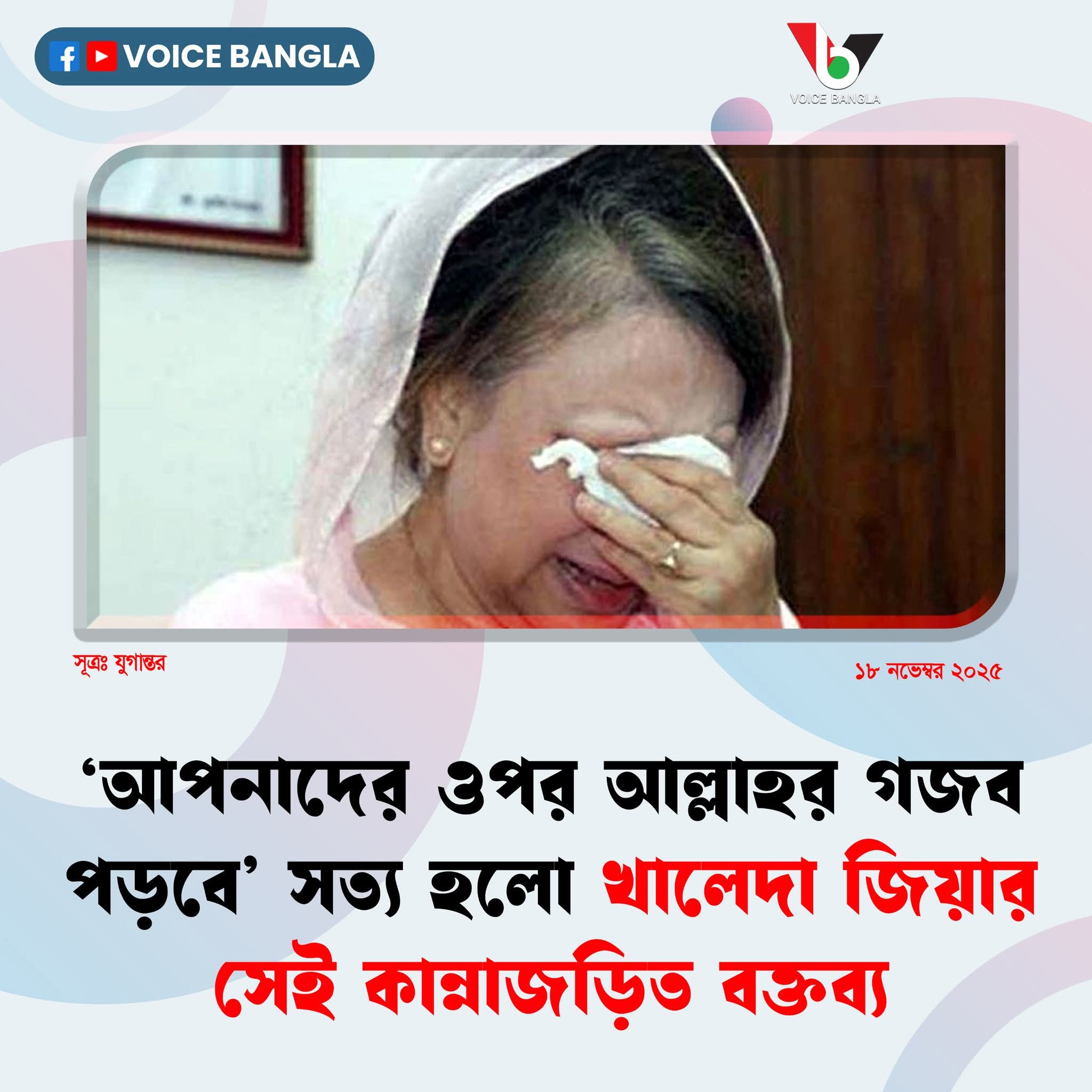 কান্নাজড়িত কণ্ঠে খালেদা জিয়া আরও বলেন, ‘আমি এর বিচারের ভার মহান আল্লাহর হাতে ছেড়ে দিলাম।দেশবাসীর কাছে ছেড়ে দিলাম।’
