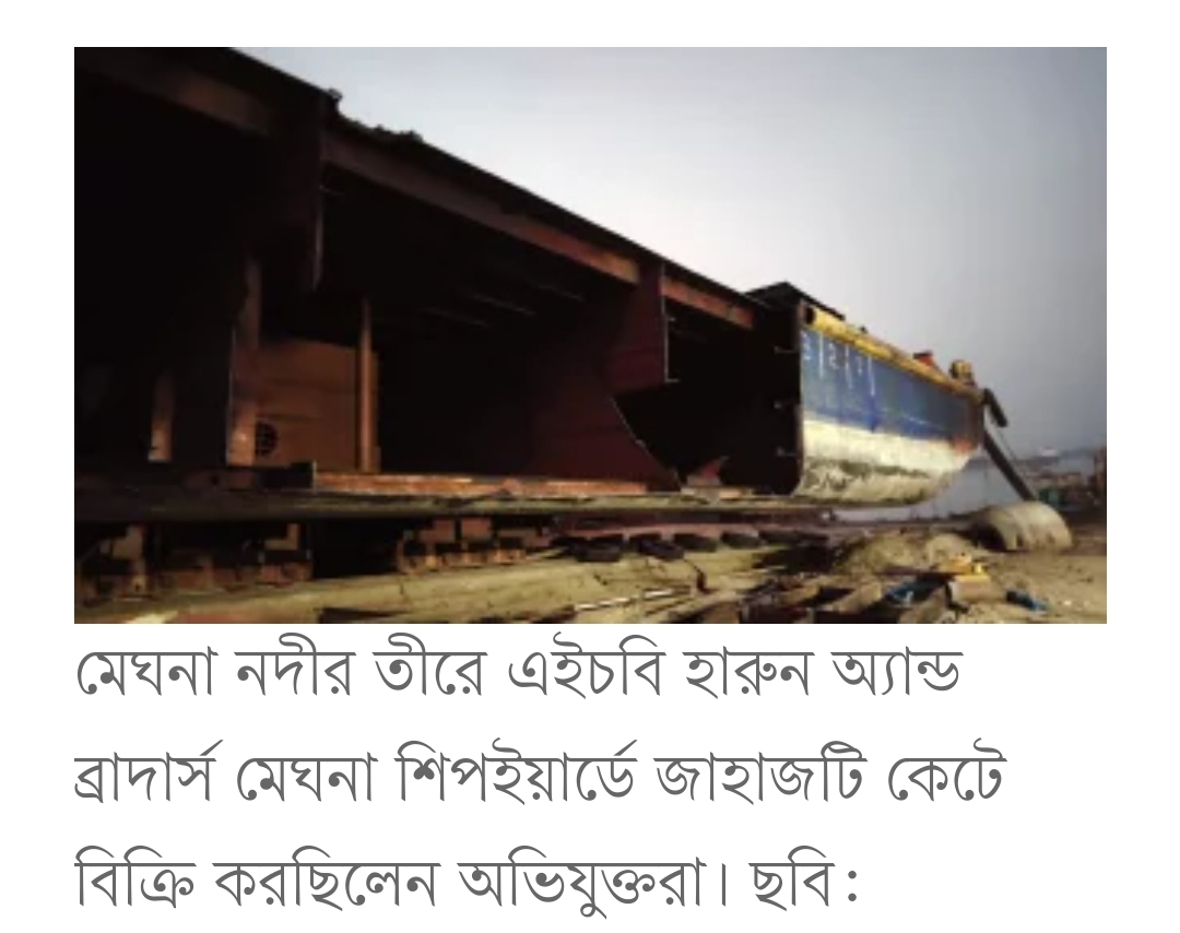 গত ১৫ দিন ধরে উপজেলার পিরোজপুর ইউনিয়নের কাদিরগঞ্জ এলাকায় মেঘনা নদীর তীরে এইচবি হারুন অ্যান্ড ব্রাদার্স মেঘনা শিপইয়ার্ডে জাহাজটি কেটে বিক্রি করছিলেন অভিযুক্তরা।