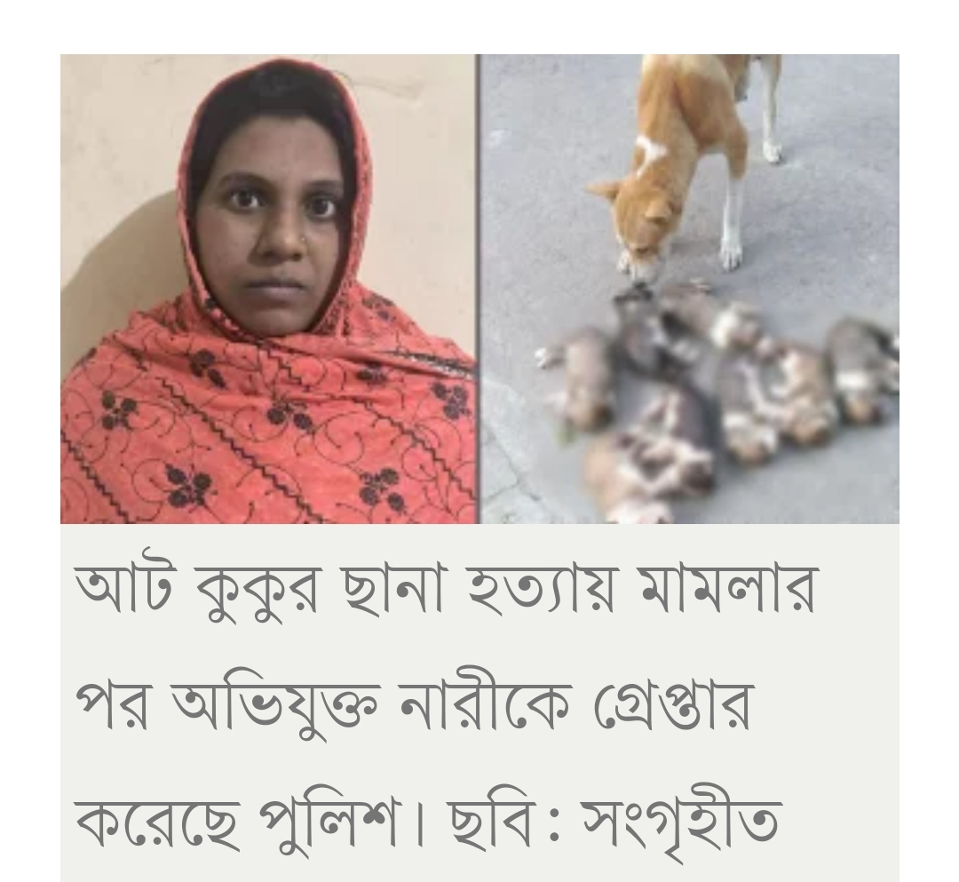 ৮ কুকুরছানা হত্যা মামলা, সরকারি কর্মকর্তার স্ত্রী গ্রেপ্তার