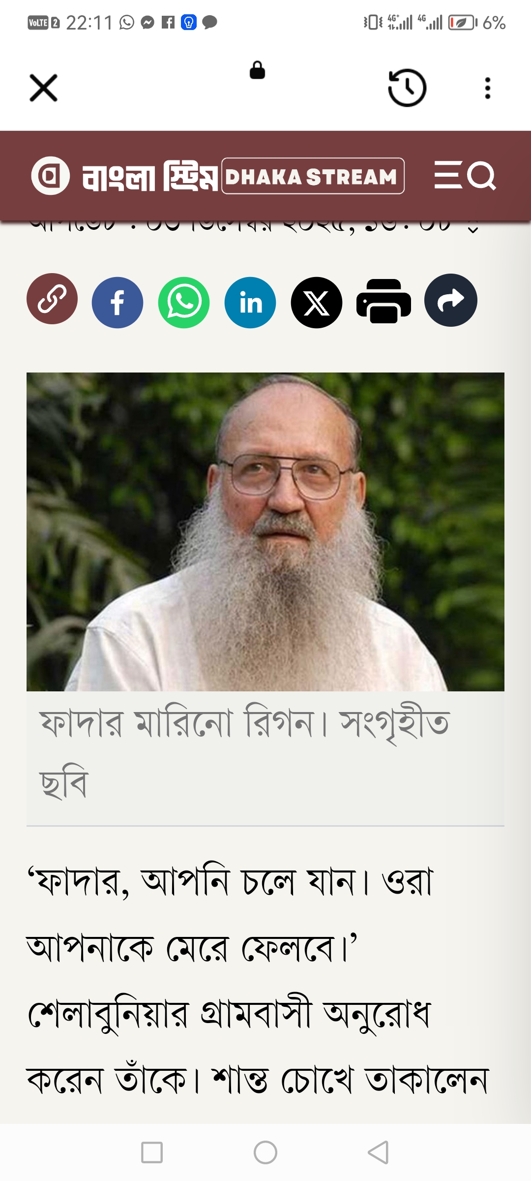 ‘ফাদার, আপনি চলে যান। ওরা আপনাকে মেরে ফেলবে।’ শেলাবুনিয়ার গ্রামবাসী অনুরোধ করেন তাঁকে। শান্ত চোখে তাকালেন তিনি। ভাঙা ভাঙা বাংলায় বললেন, ‘আমার সন্তানেরা বিপদে, আর আমি বাবা হয়ে পালিয়ে যাব? আমি কোথাও যাব না। তোমাদের সঙ্গেই থাকব, তোমাদের সঙ্গেই মরব।’ শেলাবুনিয়া গ্রামের ক্যাথলিক মিশনের ইতালিয়ান ফাদার মারিনো রিগন কোথাও গেলেন না। জীবনের ঝুঁকি নিয়ে থেকে গেলেন ওই গ্রামে।