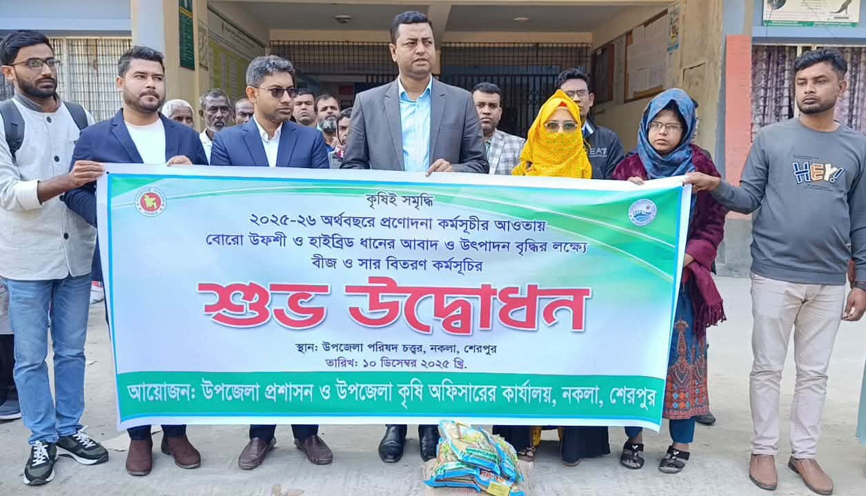 The free distribution of Boro paddy seeds and chemical fertilizers among small and marginal farmers under the agricultural incentive program for the 2025-26 fiscal year was inaugurated on Wednesday noon in Nakla upazila of Sherpur district.