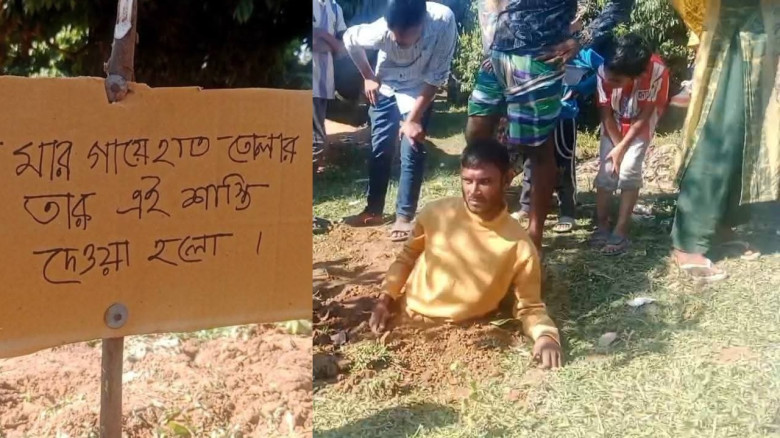 মাকে মারধর;মাদকাসক্ত ছেলেকে কোমরসমান মাটিতে পুঁতে রাখলো এলাকাবাসী