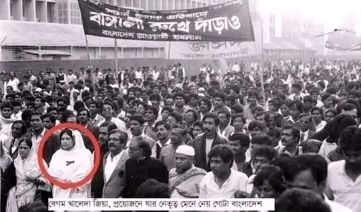 এই প্রেক্ষাপটে একটি ঘটনা আজও রাজনৈতিক আলোচনায় ব্যতিক্রমী হিসেবে উঠে আসে। প্রচলিত বক্তব্য অনুযায়ী, এরশাদ সরকারের গুলিতে আওয়ামী লীগের একটি সমাবেশে বহু মানুষ নিহত হওয়ার পর ঢাকায় বিচার দাবিতে একটি মিছিল হয়। সে সময় শেখ হাসিনা সেখানে উপস্থিত ছিলেন না—এমন দাবি প্রচলিত রয়েছে। একই সঙ্গে বলা হয়, খবর পেয়ে বিএনপি নেত্রী খালেদা জিয়া সেখানে উপস্থিত হয়ে মিছিলটির নেতৃত্ব দেন।যদিও এই ঘটনার দলিলভিত্তিক প্রমাণ সর্বত্র সমান নয়, তবু এটি বিরোধী ঐক্য ও মানবিক দায়িত্ববোধের একটি প্রতীকী দৃষ্টান্ত হিসেবে রাজনৈতিক ইতিহাসে আলোচিত।