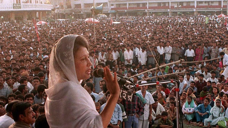 উল্লেখ্য ১৯৮১ সালে জিয়াউর রহমান হত্যার পর, খালেদা জিয়া রাজনীতিতে প্রবেশ করেন। ১৯৮৩ সালে তিনি সাত দলীয় ঐক্যজোট গঠন করে সামরিক শাসনের বিরুদ্ধে আন্দোলন শুরু করেন। এই সময়ে তিনি গণতন্ত্র পুনরুদ্ধারের জন্য ব্যাপক জনসমর্থন আদায় করেন এবং ১৯৯১ সালের নির্বাচনে বিএনপিকে একক সংখ্যাগরিষ্ঠতা এনে দেন, যার ফলে তিনি প্রথম নারী প্রধানমন্ত্রী হিসেবে শপথ গ্রহণ করেন।