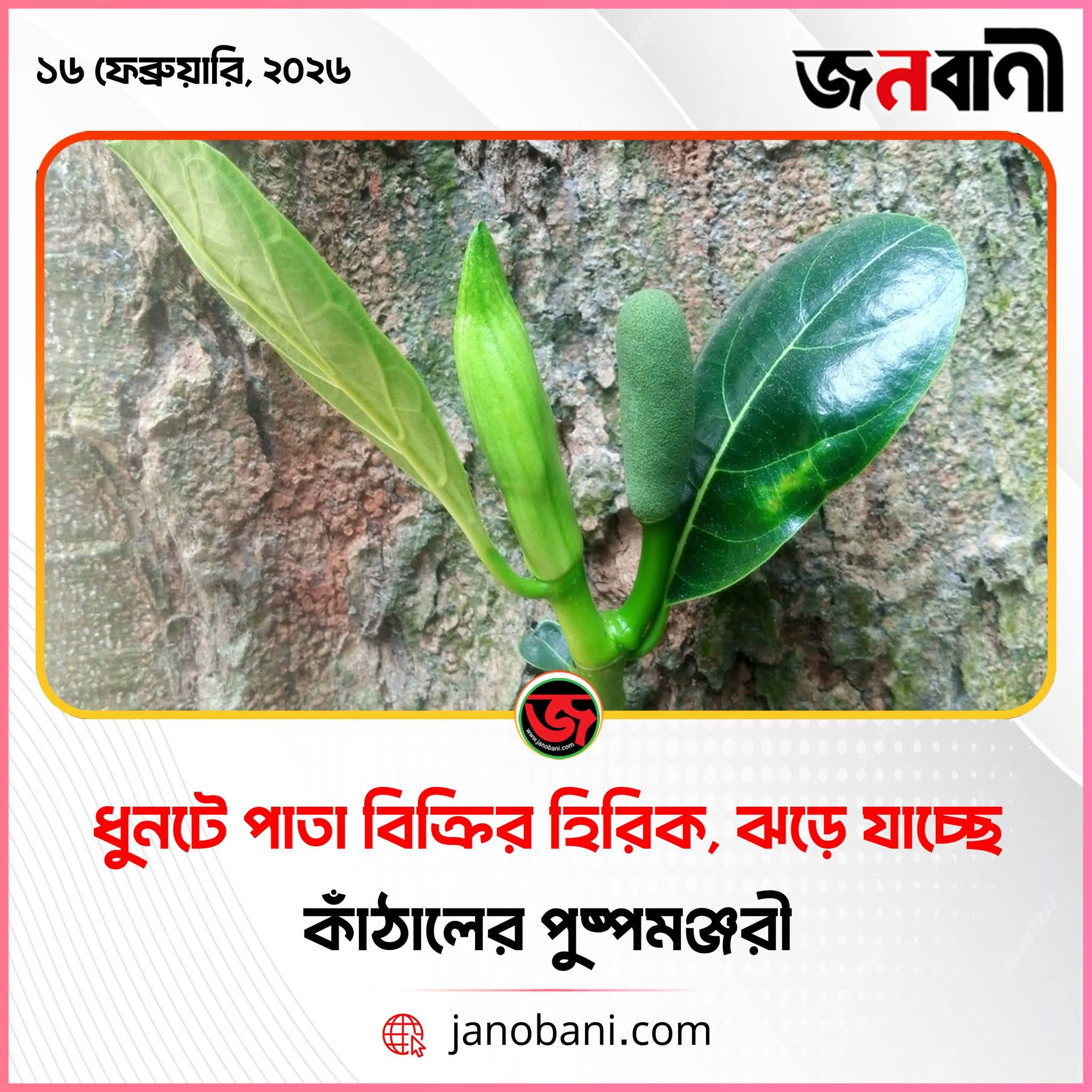 জাতীয় ফল কাঁঠাল শুধু স্বাদ ও পুষ্টিগুণেই সমৃদ্ধ নয়, এর পুষ্পমঞ্জরীর গঠন ও ফল ধারণের প্রক্রিয়াও অত্যন্ত বৈচিত্র্যময়। গ্রীষ্মের আগমনী বার্তা নিয়ে ধুনট উপজেলা-এর বিভিন্ন এলাকায় গাছে গাছে দুলতে শুরু করেছে কাঁঠালের পুষ্পমঞ্জরী। তবে এর মধ্যেই শুরু হয়েছে কাঁঠাল গাছের পাতা বিক্রির হিরিক, যা নিয়ে উদ্বেগ দেখা দিয়েছে কৃষক ও সচেতন মহলে।