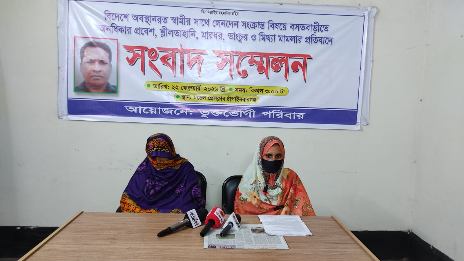 বসতবাড়ীতে অনধিকার প্রবেশ, শ্লীলতাহানি, মারধর, ভাংচুর ও মিথ্যা মামলার প্রতিবাদে সংবাদ সম্মেলন