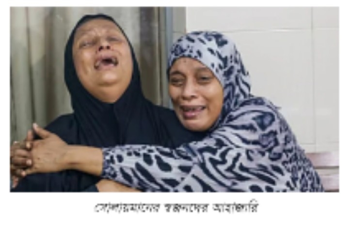 স্বামীর মরদেহ চট্টগ্রাম মেডিকেল কলেজ হাসপাতালের লাশঘরে!তখনও মরিয়ম আক্তার সাথীর বিশ্বাস হচ্ছিল না-আর কখনো ফিরবে না তার স্বামী। ফিরবে না তার তিন মাস বয়সী সন্তান আয়মানের বাবা। তাই লাশঘরের সামনেই তিনি আহাজারি করতে করতে বলছিলেন, ‘তোমার আয়মান আসছে কথা বলো, কথা বলো না কেন। ছেলের প্রথম ঈদে সাদা পাঞ্জাবি কিনলা। তুমি কেন পরপারে চইলা গেলা।’