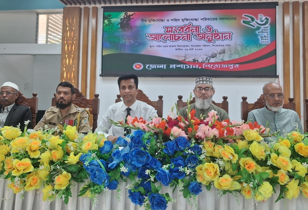 পিরোজপুরে যথাযথ মর্যাদায় ৫৬তম মহান স্বাধীনতা ও জাতীয় দিবস উদযাপিত হয়েছে। এ উপলক্ষে জেলা প্রশাসনের উদ্যোগে আয়োজিত বীর মুক্তিযোদ্ধাদের সংবর্ধনা ও আলোচনা সভায় বক্তারা একটি শোষণমুক্ত, গণতান্ত্রিক ও ন্যায়বিচারভিত্তিক বাংলাদেশ গড়ার দৃঢ় প্রত্যয় ব্যক্ত করেছেন।
