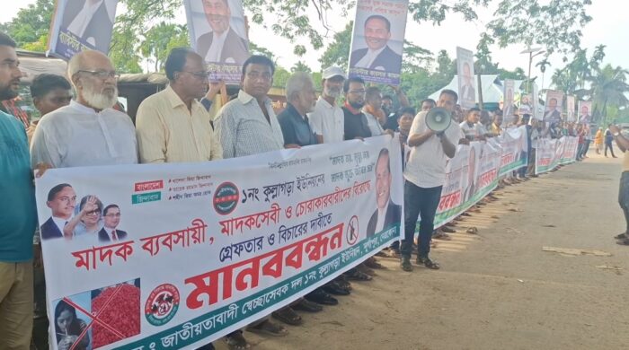 মাদক ব্যবসায়ী,মাদকসেবী ও চোরাকারবারিদের নির্মূলের দাবিতে দুর্গাপুরে মানববন্ধন
