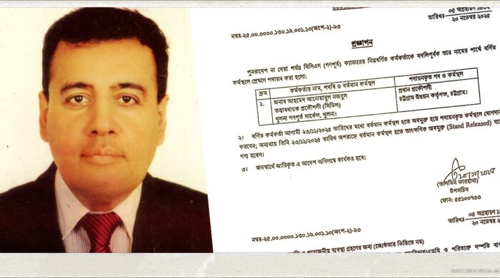 গৃহায়ন ও গণপূর্ত মন্ত্রণালয় বিসিএস (গণপূর্ত) ক্যাডারের খুলনা গণপূর্ত সার্কেলের তত্ত্বাবধায়ক প্রকৌশলী (সিভিল) আহমেদ আনোয়ারুল নজরুল–কে বদলি করে চট্টগ্রাম উন্নয়ন কর্তৃপক্ষে (সিডিএ) প্রধান প্রকৌশলী হিসেবে প্রেষণে পাঠানো হয়েছে। বৃহস্পতিবার (২০