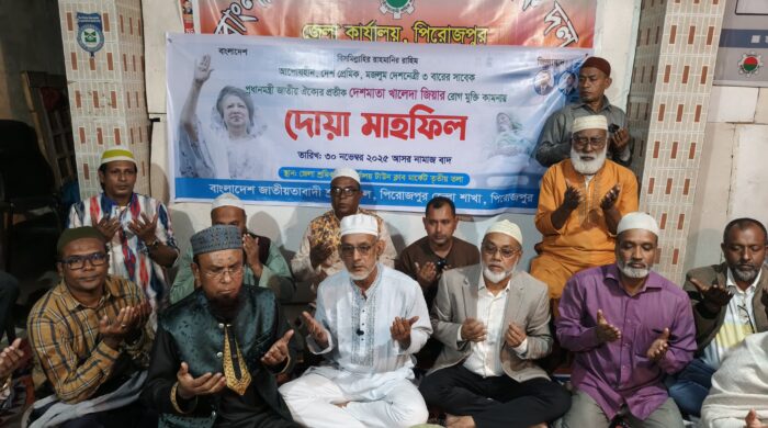 পিরোজপুর প্রতিনিধি : পিরোজপুরে বিএনপি চেয়ারপারসন ও সাবেক প্রধানমন্ত্রী খালেদা জিয়ার রোগমুক্তি কামনায় দোয়া মাহফিল অনুষ্ঠিত হয়েছে। শনিবার (৩০ নভেম্বর) বিকেলে বাংলাদেশ জাতীয়তাবাদী শ্রমিক দল পিরোজপুর জেলা শাখার উদ্যোগে শ্রমিক