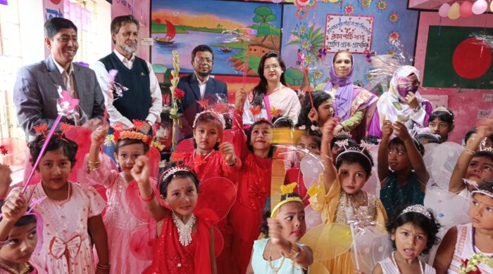 পিরোজপুর প্রতিনিধি : পিরোজপুর সদর উপজেলার সরকারি প্রাথমিক বিদ্যালয়ে উৎসবমুখর পরিবেশে প্রাক-প্রাথমিক শ্রেণির ক্লাস পার্টি অনুষ্ঠিত হয়েছে। সোমবার (১ ডিসেম্বর) সকালে সদর উপজেলার ৮০ নং পালপাড়া সরকারি প্রাথমিক বিদ্যালয় প্রাঙ্গণে