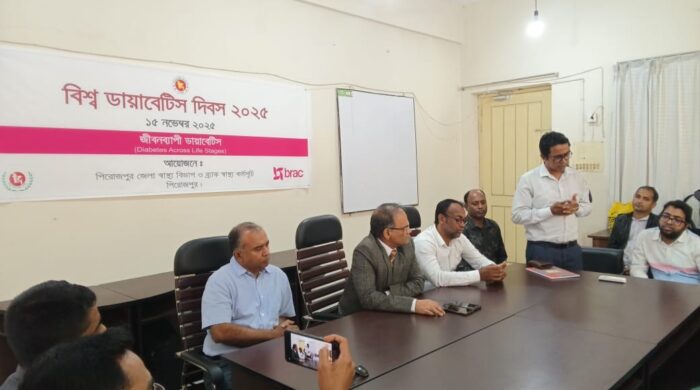পিরোজপুর প্রতিনিধি : পিরোজপুর জেলা স্বাস্থ্য বিভাগের আয়োজনে এবং ব্র্যাক স্বাস্থ্য কর্মসূচি এর সহযোগিতায় “জীবনব্যাপী ডায়াবেটিস – Diabetes Across Life Stages” প্রতিপাদ্যকে সামনে রেখে “বিশ্ব ডায়াবেটিস দিবস – ২০২৫” উদযাপন
