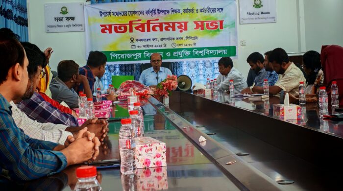 পিরোজপুর প্রতিনিধি : পিরোজপুর বিজ্ঞান ও প্রযুক্তি বিশ্ববিদ্যালয়ের (পিবিপ্রবি) উপাচার্য অধ্যাপক ড. মো. শহীদুল ইসলামের দায়িত্ব গ্রহণের বর্ষপূর্তি উপলক্ষে শিক্ষক, কর্মকর্তা ও কর্মচারীদের সঙ্গে এক মতবিনিময় সভা বৃহস্পতিবার (৩০ অক্টোবর) read more