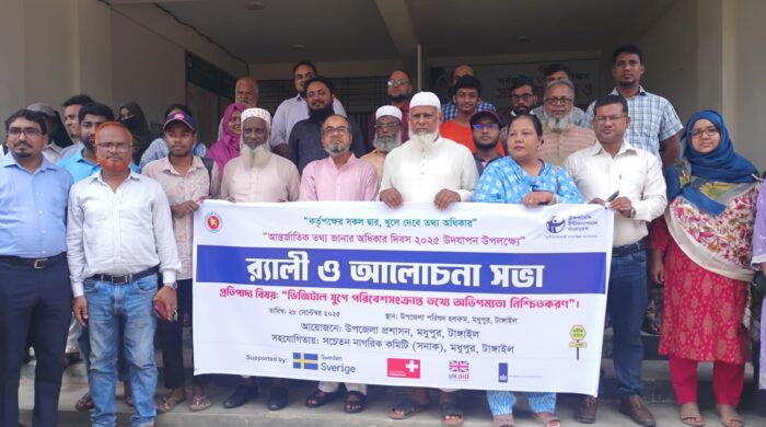 ।।আঃহামিদ(মধুপুর)টাঙ্গাইল প্রতিনিধি।। টাঙ্গাইলের মধুপুরে আন্তর্জাতিক তথ্য জানার অধিকার দিবস ২০২৫ উদযাপন উপলক্ষে শোভা যাত্রা ও আলোচনা সভা অনুষ্ঠিত হয়েছে। “কর্তৃপক্ষের সকল দ্বার,খুলে দিবে তথ্য অধিকার’ এই স্লোগান কে সামনে রেখেই